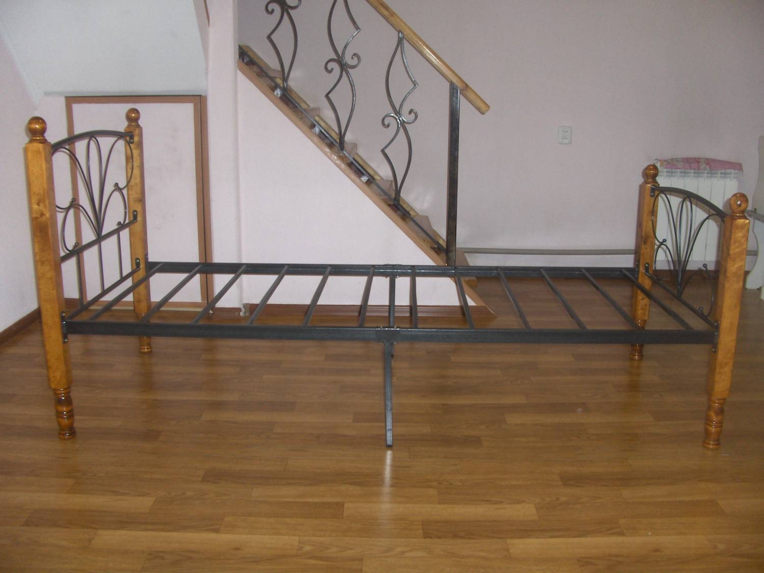 Сборно-разборный металлический каркас на деревянных балясинах цвета дуба.