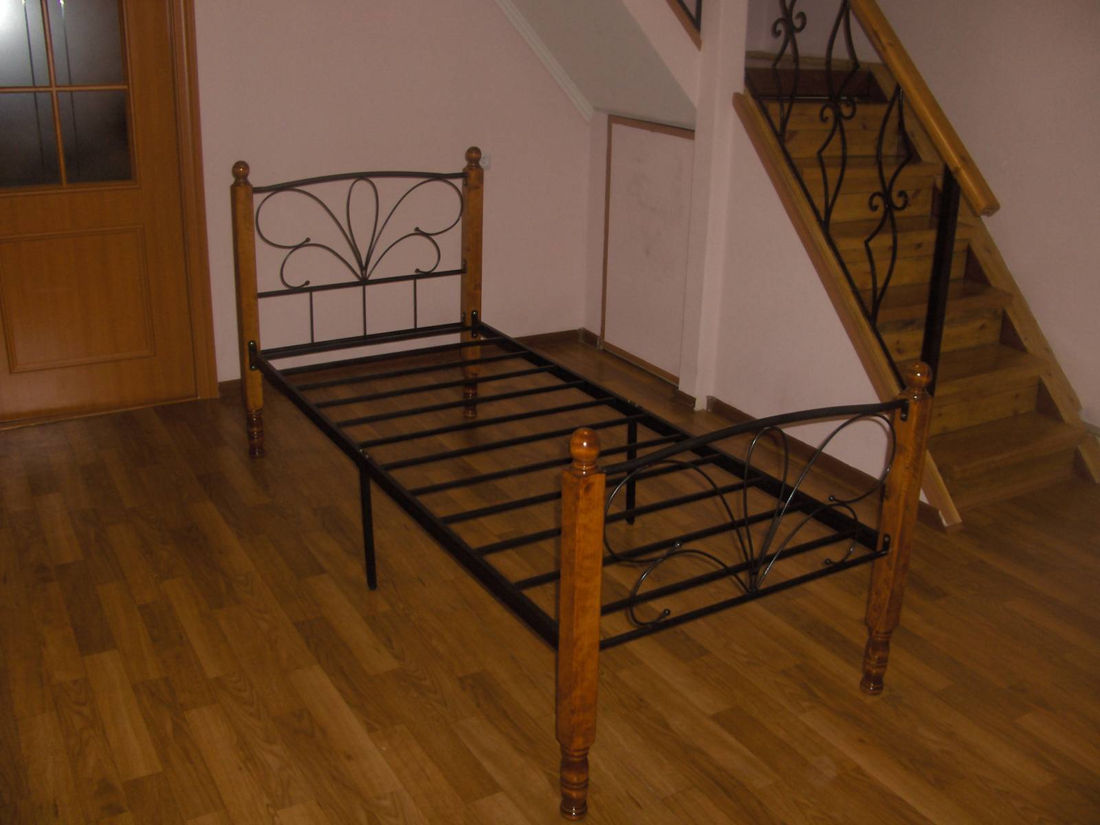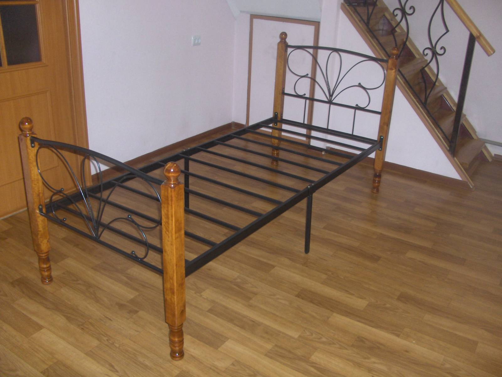 Металлический каркас, деревянные балясины